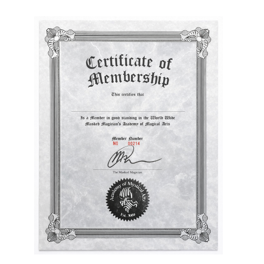 Certificate by Masked Magician